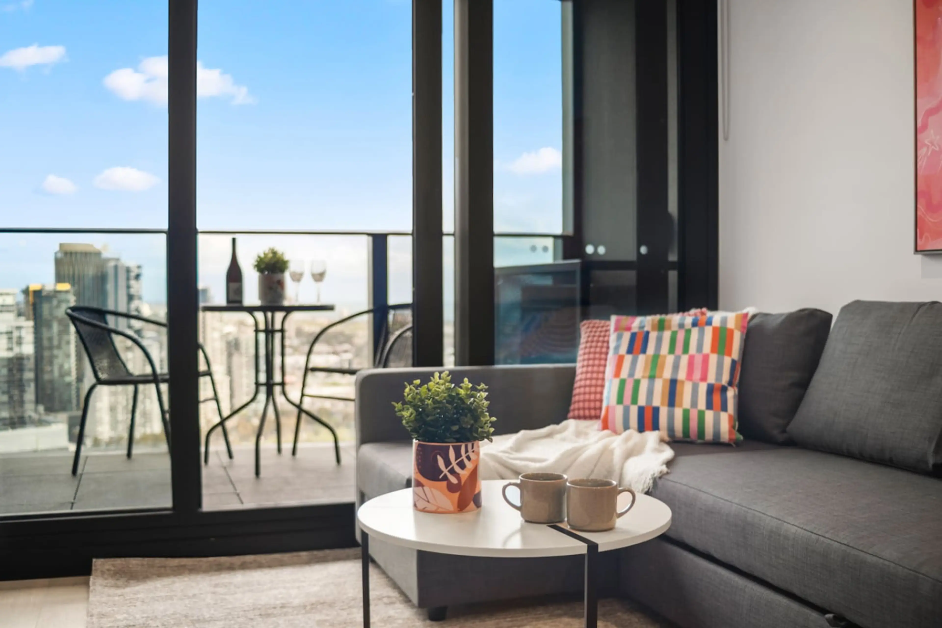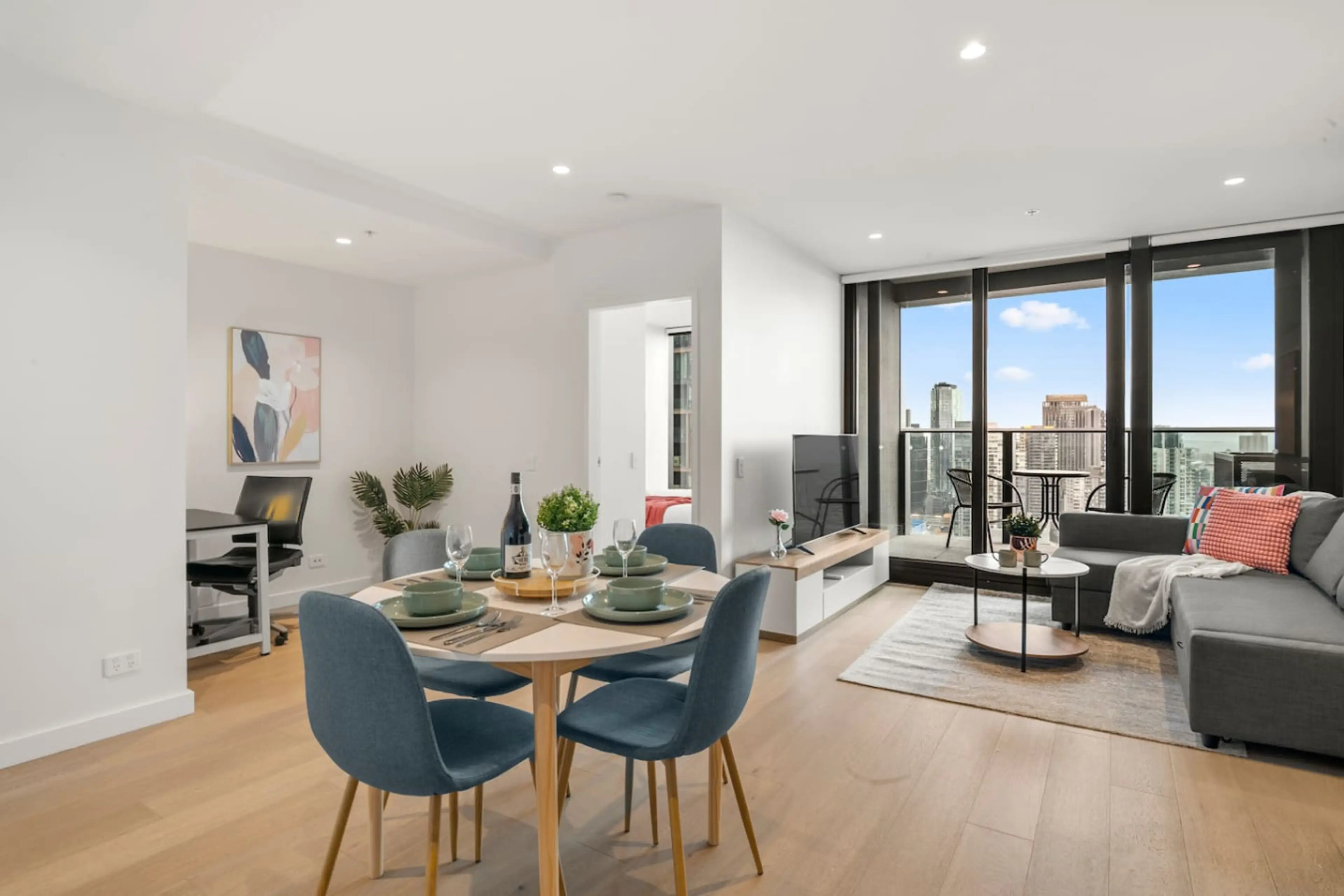 Located on the 27th floor in Melbourne’s Docklands, this modern 1-bedroom apartment combines breathtaking bay & city views with practical comforts. Ideal for couples, small families, or business travellers, it sleeps up to 4 guests with a queen bedroom and a sofa bed that converts into a double bed....